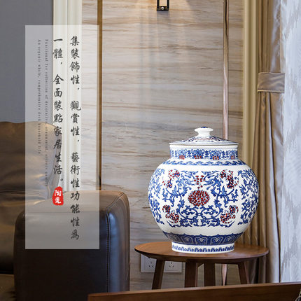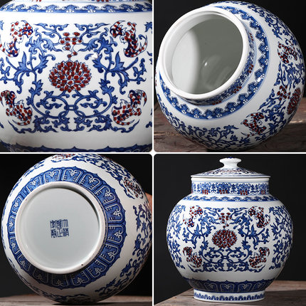 Imitation Yongzheng hand-painted antique blue and white porcelain storage pot