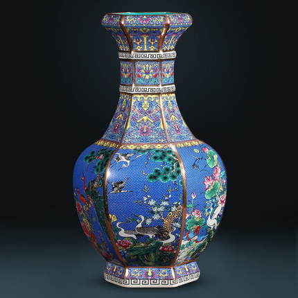 Flower arrangement in a gold vase imitating Qianlong dynasty.