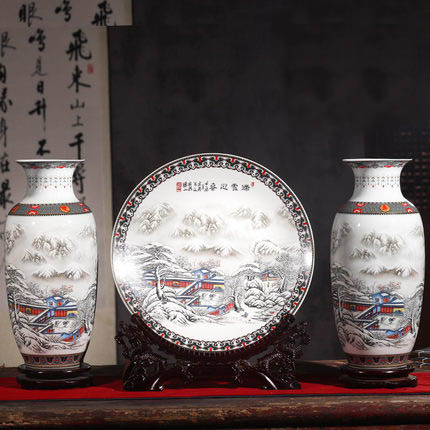 Compatible porzellan Jahrriesnge  for snow scene vase set 3pcs cna1044