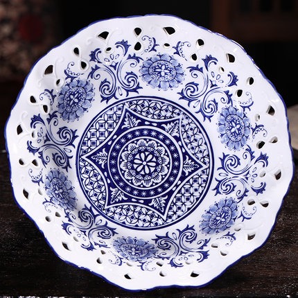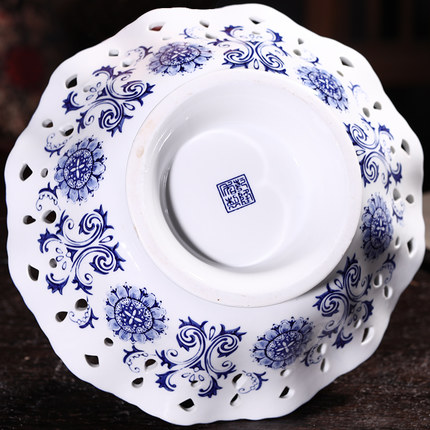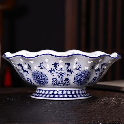 Blue and white ceramic empty ceramic tall fruit and candy plate
