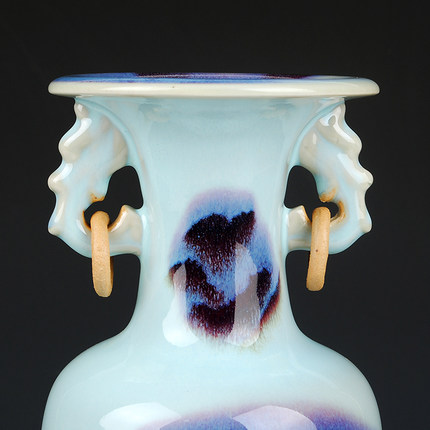 Jun porcelain living ring double ear vase