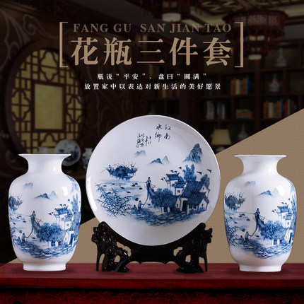 Jiangnan Water Town,Countertop vase. Applicable scenarios: Living room, bedroom, desktop, bedside, home,Festival,company,study room.Small vase three-piece decoration living room flower arrangement home TV cabinet decoration crafts