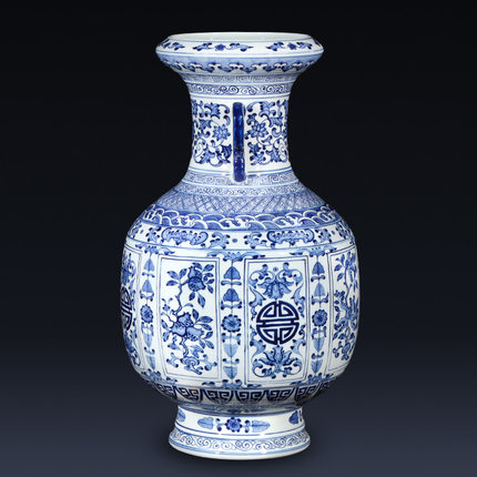 Blue and White Porcelain Two-ear Vase Imitation Qianlong